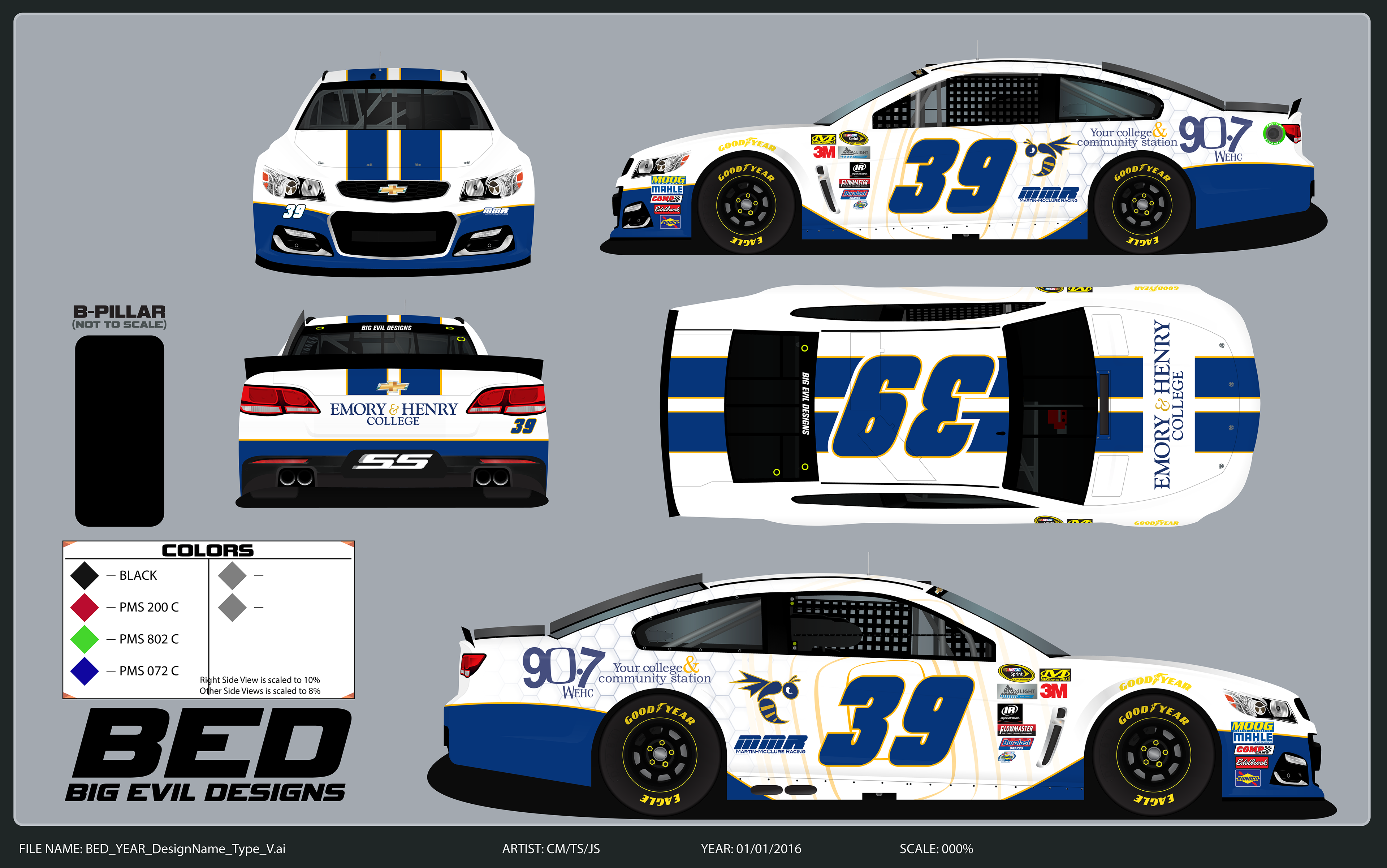 The page includes various concept paint schemes that were designed for Eric McClure in the NASCAR Xfinity Series & MMR in the NASCAR K&N Series.